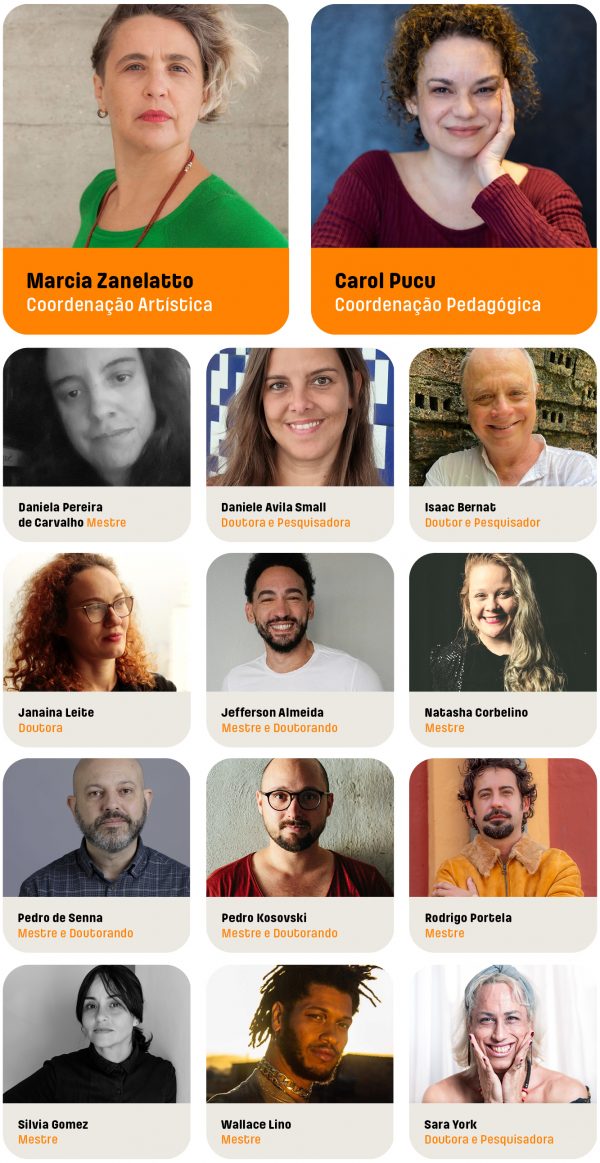 Com método elaborado pela dramaturga Marcia Zanelatto, a partir de sua prática na cena e em sala de aula, e coordenação pedagógica da antropóloga e artista Carolina Pucu, o curso se realiza em cinco módulos, traçando percursos entre historiografia, análises críticas e processos criativos.